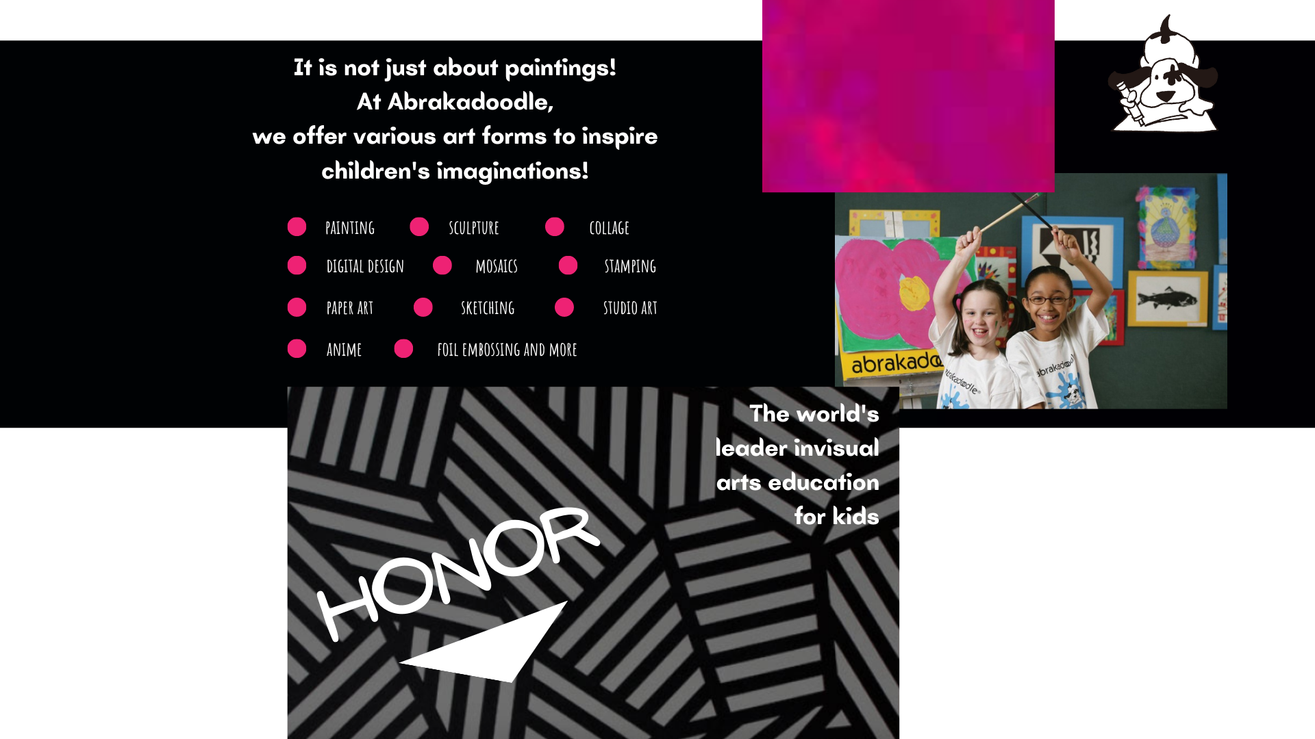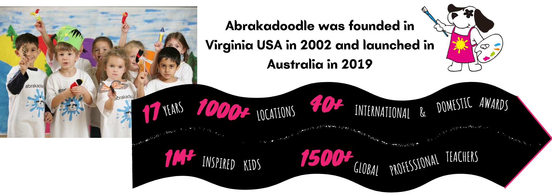 Established in 2002, Abrakadoodle is the most comprehensive international art education company of its kid, offering extensive visual arts classes for children aged 20 months to 12 years old. Abrakadoodle provides children with the inspiration, materials, guidance and tools to be creative. Each child creates original art work which is a reflection of his or her own personal interpretation and ideas. The Abrakadoodle program provides children with learning experiences that develop knowledge, skills and an individual sense of creativity while having FUN!